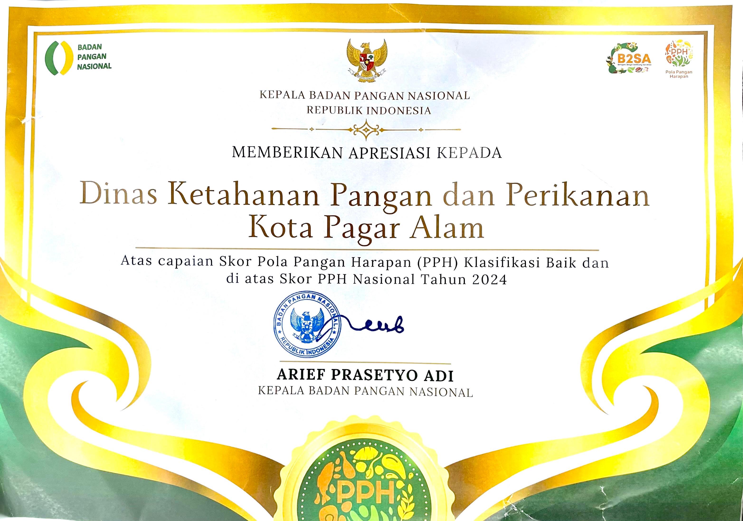 Kota Pagar Alam Raih Piagam Skor Pola Pangan Harapan (PPH) di Atas Rata-Rata Nasional Tahun 2024