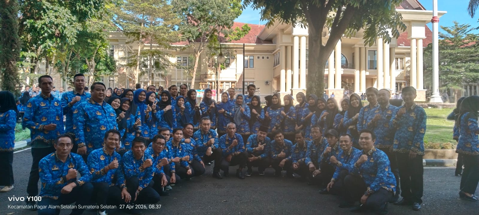 Pagar Alam, 27 April 2026 – Di bawah langit cerah Kota Pagar Alam, seluruh pegawai Dinas Ketahanan Pangan dan Perikanan berkumpul dalam satu barisan yang solid. Kehadiran mereka bukan sekadar rutinitas pagi, melainkan sebuah bentuk khidmat dalam mengikuti Apel Gabungan yang menyatukan tiga momentum besar nasional tahun ini.