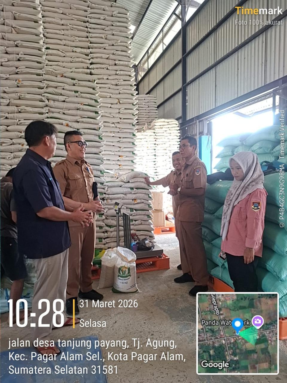 Pagar Alam, 31 Maret 2026 - Dinas Ketahanan Pangan dan Perikanan Kota Pagar Alam melaksanakan kegiatan pengecekan kualitas dan kuantitas beras bantuan pangan untuk periode Februari hingga Maret 2026 pada Selasa (31/3/2026). Kegiatan ini berlangsung di Gudang BULOG Kota Pagar Alam, Provinsi Sumatera Selatan.