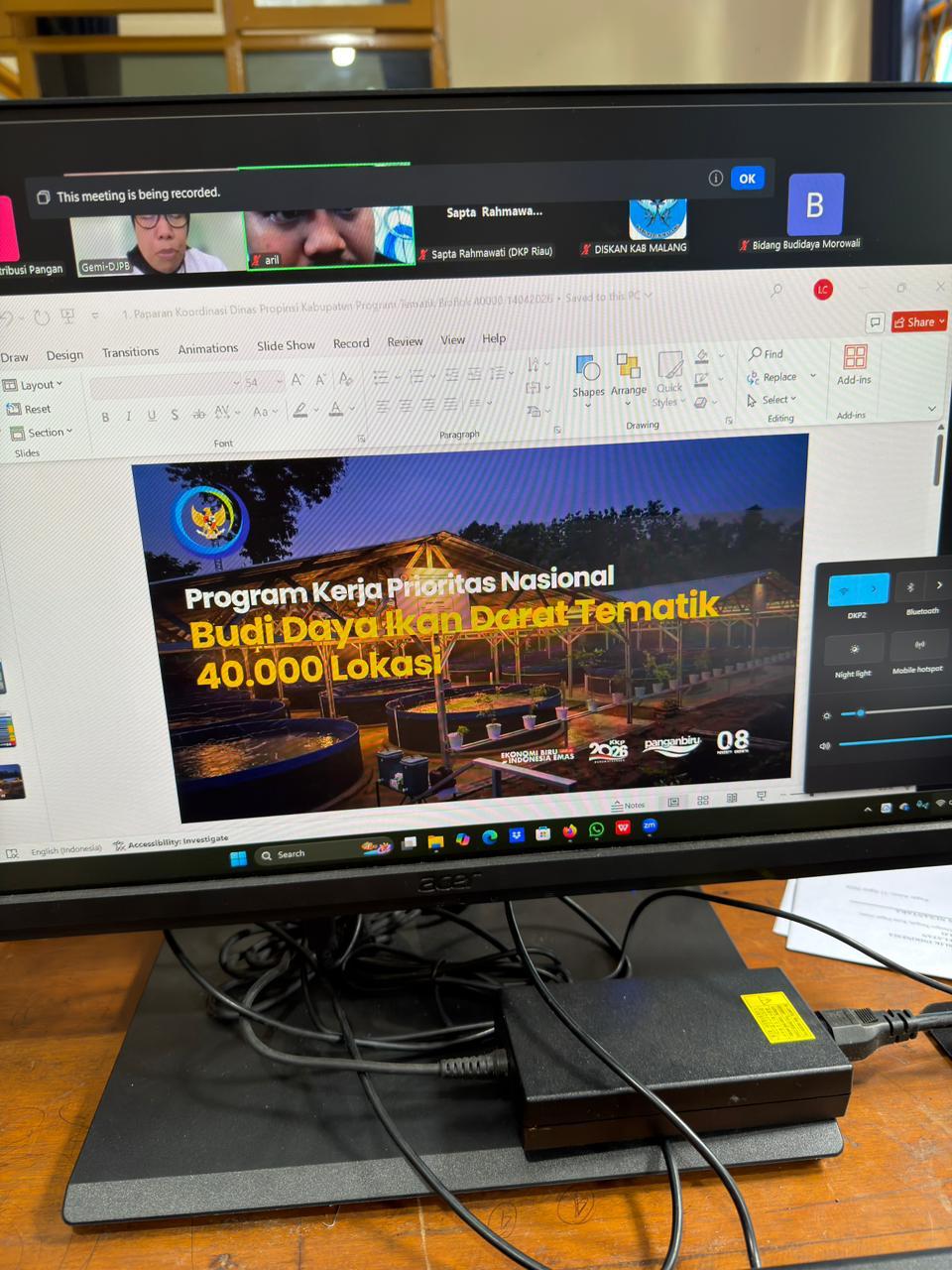 Pagar Alam, Dinas Ketahanan Pangan dan Perikanan (DKPP) Kota Pagar Alam mengikuti kegiatan sosialisasi budidaya tematik bioflok dan minapadi yang diselenggarakan secara daring melalui platform Zoom, Selasa (14/04/2026).