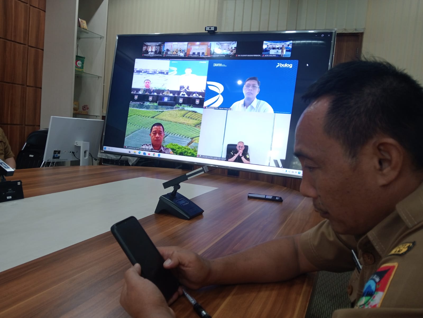 Pagar Alam, Senin (20 April 2026) - Pemerintah Kota Pagar Alam mengikuti kegiatan Zoom Meeting terkait pengendalian inflasi daerah, dukungan program pembangunan 3 juta rumah, serta sosialisasi sertifikasi halal yang diselenggarakan oleh Kementerian Dalam Negeri melalui Bagian Ekonomi dan Pembangunan (Ekobang).