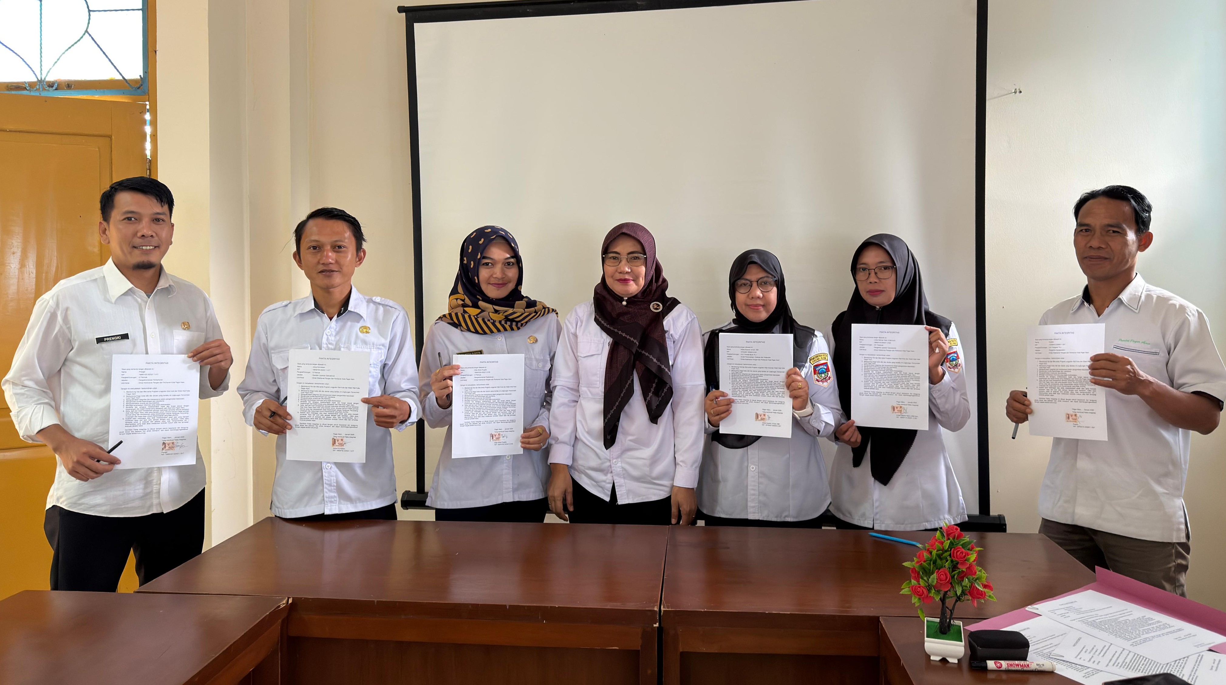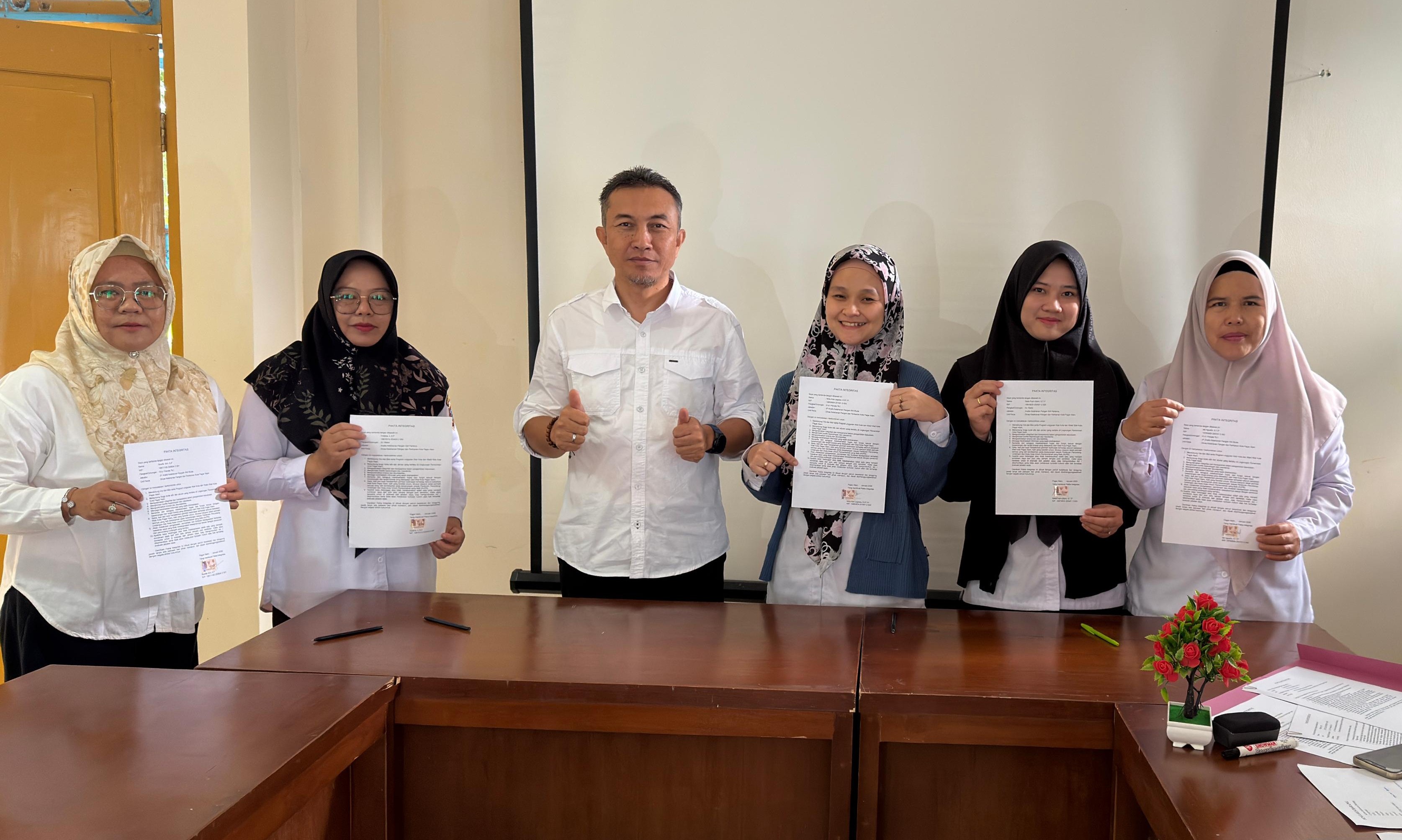 Penanda Tanganan Fakta Integritas Dinas Ketahanan Pangan Tahun 2026 Dalam Rangka Mendukung Visi dan Misi Wali kota dan Wakil Wali kota Tahun 2025-2029 Kegiatan Ini Dipimpin Oleh Plt. Kepala Dinas Ketahanan Pangan dan Perikanan Jefri Zulfikar, SP.,M.Si Didampingi Oleh Sekretaris Langsung Deli Andriani, SE.,MM Serta Kepala Bidang konsumsi dan Keamanan Pangan Wanhari, SE. Kegiataan Penanda Tanganan Fakta Integritas Dihadiri Oleh Seluruh Staf Sekretariat, Bidang Ketersediaan dan Distribusi Pangan Serta Bidang Konsumsi dan Keamanan Pangan Dinas Ketahanan Pangan dan Perikanan yang Dilaksanakan Diruang Rapat Dinas Ketahanan Pangan dan Perikanan Kota Pagar Alam Pada Hari Rabu, 21 Januari 2026.