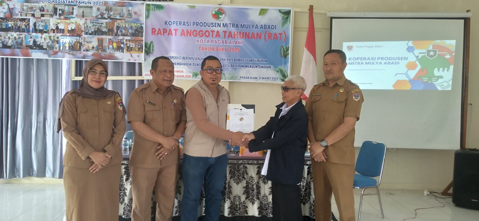 Pagar Alam — Dinas Ketahanan Pangan Dan Perikanan Kota Pagar Alam Yang Diwakili Oleh Sekretaris Dinas, Deli Andriani, SE., MM., Beserta Staf Bidang Konsumsi Dan Keamanan Pangan, Novita Aini, S.P., Dan Sella Putri Utami, S.T.P., Menghadiri Kegiatan Rapat Anggota Tahunan (RAT) Ke-VII Koperasi Produsen Mitra Mulya Abadi Tahun 2026. Kegiatan Tersebut Dilaksanakan Di Villa Mentari, Kota Pagar Alam, Selasa (31/3/2026).